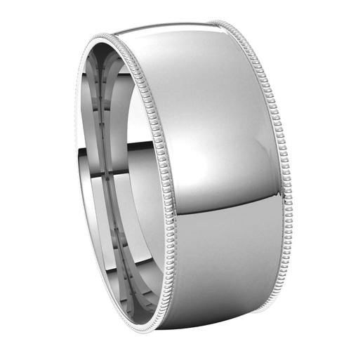 White Gold 8mm Lightweight Comfort Fit Milgrain Edge Wedding Band