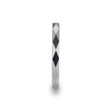 WICHITA 2mm Diamond Faceted White Tungsten Ring ~ (J65-256)